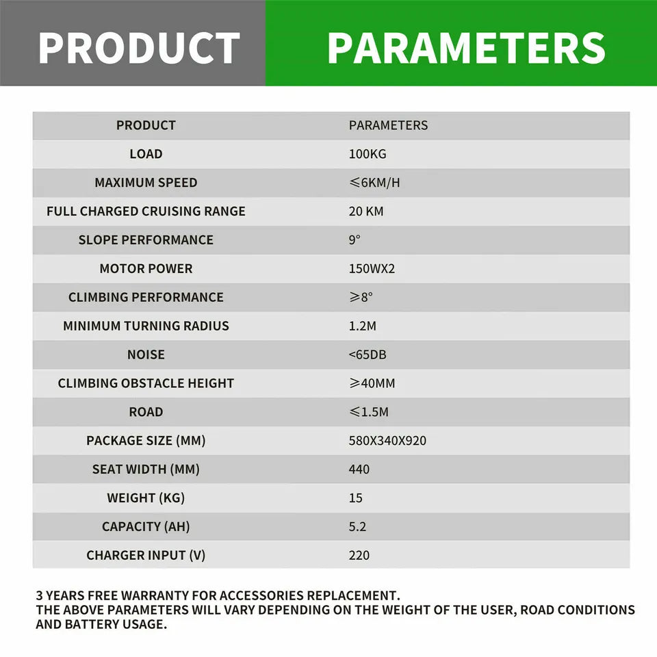 - Automatic wheelchair with 360-degree waterproof universal intelligent joystick for easy control.