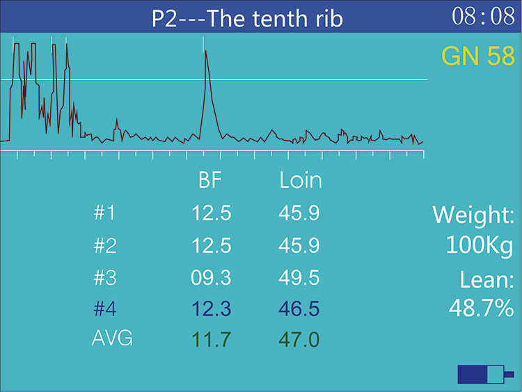 3. Measure back fat thickness, loin muscle thickness and lean percentage.